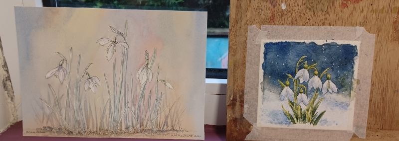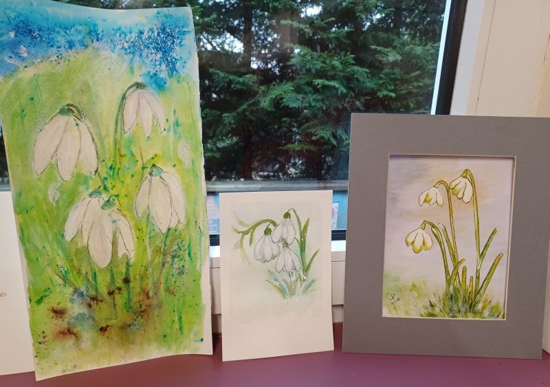 The theme this week was Snowdrops/Flowers. Definitely a bit of a challenge for me… I never know when to stop messing around with my work. I definitely needed a darker background in order to make the white snowdrops stand out more. You don't have to follow the theme but it's helpful to give us ideas. Sometimes I chicken out and ‘go rogue’, if I think it's too hard a subject.
